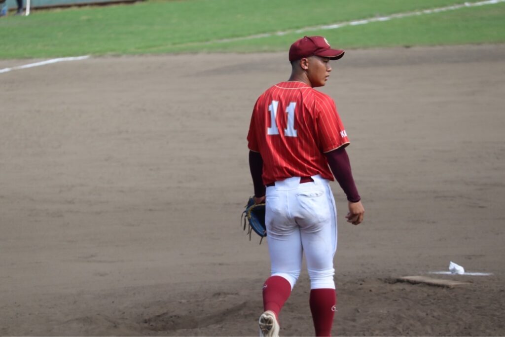 秋季リーグ戦の1週目の第1戦。春リーグ優勝の聖カ大と今春4位に沈んだ四学大の秋リーグ初戦。先制は、聖カ大、3番門田(4年:西条)のヒットで先制する。3回にも追加点をあげ2対0とする。6回裏試合が動く、四学大の攻撃、相手のエラーで出塁し、7番稲次(3年:ノースアジア明桜)のツーベースヒットでチャンスを広げ、8番岡田(2年:高松商)のヒットで1点を返し、7番中野(3年:明徳義塾)の犠牲フライで同点に追いつき、2番八田(3年:藤井)のヒットで逆転に成功する。