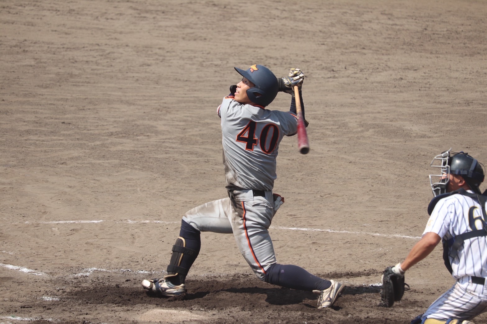 試合は初回、愛大の中尾(2年:松山東)の先頭四球を皮切りに、クリーンナップがきっちり仕事を果たし、松大打線が勢いを見せた。4番大西(2年:松山商業)の鋭い当たりで先制点を奪うと、続く5番高岡(4年:大手前高松)も適時打を放ち、序盤から流れを完全に掌握した。松大はこの回、一挙3点を挙げて試合を優位に進めた。