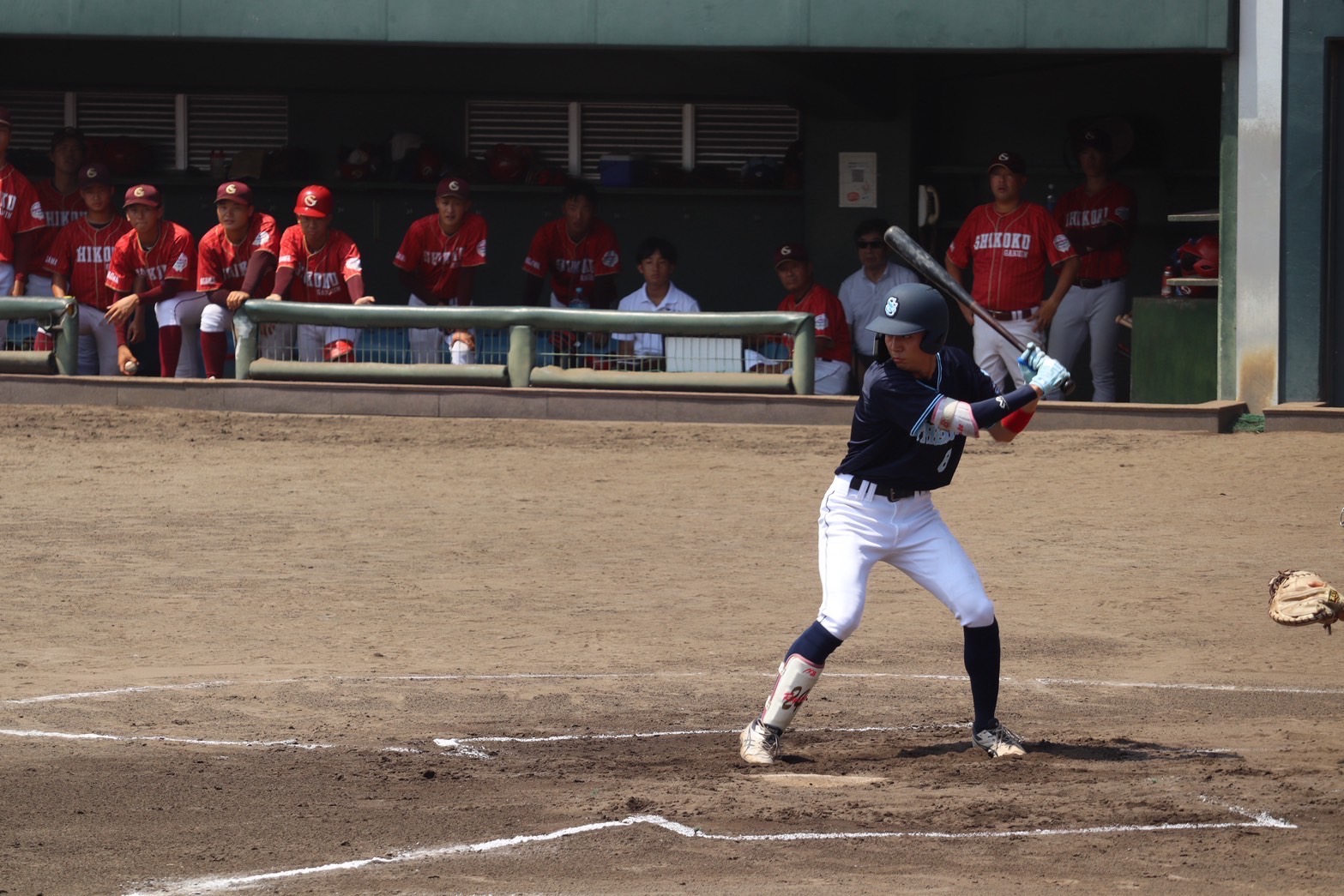 初回、四学大が1番八田(3年:藤井)がショートの内野安打で出塁すると、2番中村(4年:帝京第五)のバント、4番永田(3年:帝京第五)のタイムリーで四学大が先制した。しかし、その裏高橋(2年:松山商業)のエラーで出塁すると3番門田(4年:西条)と4番石川(3年:聖カタリナ学園)の連続ヒットで同点に追いついた。3回裏、伊藤(4年:今治工業)、高橋(2年:松山商業)、門田(4年:西条)の連続長打で一挙6点を取る。しかし、四学大が5回サードのエラーと島袋(2年:KBC学園未来沖縄)、稲次(3年:ノースアジア明桜)の連続ヒットで2点を返した。八田(3年:藤井)のショートへの内野安打から出塁すると喜屋武(3年:KBC学園未来沖縄)の犠打と畦地(3年:岡豊)のタイムリーで点を返した。