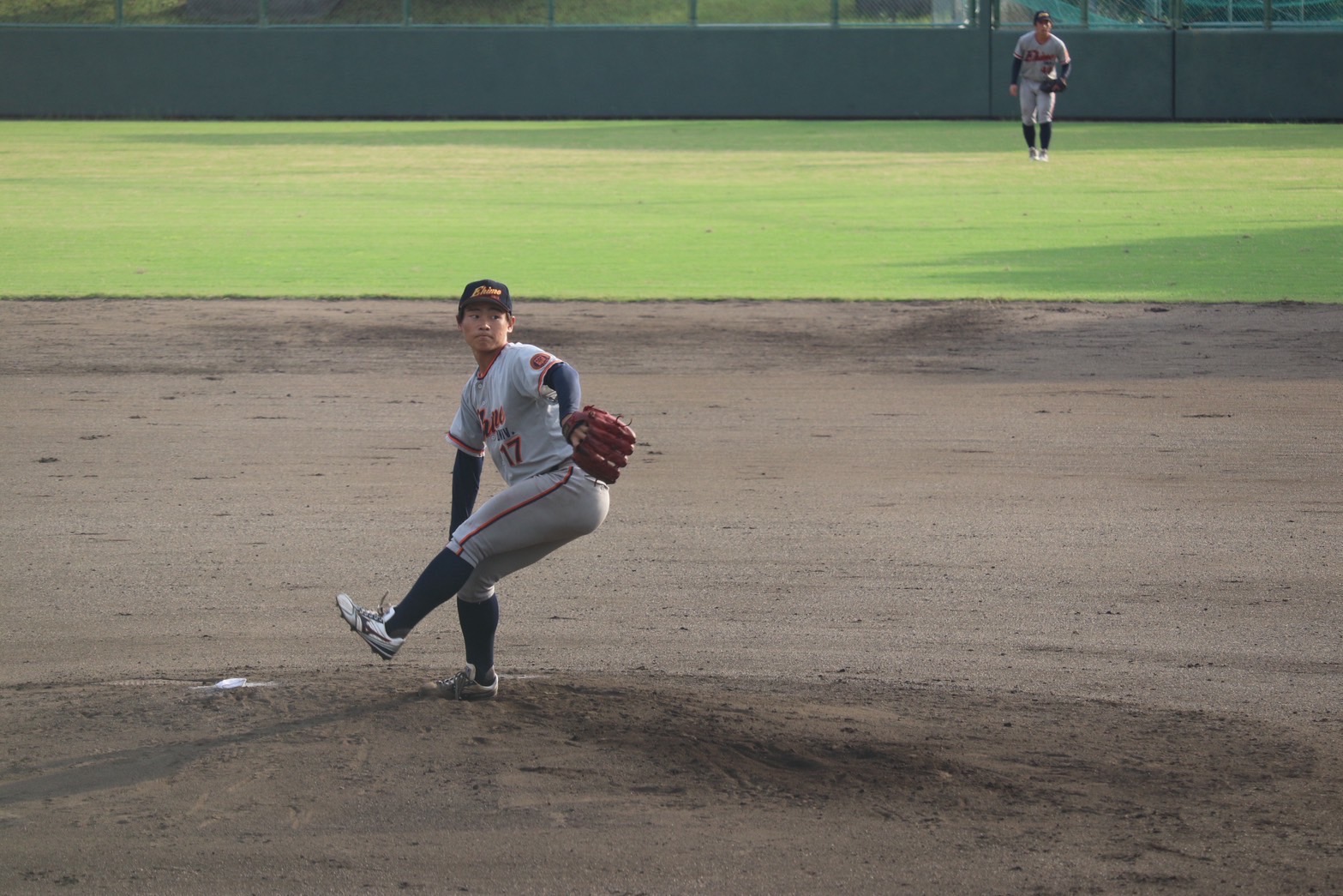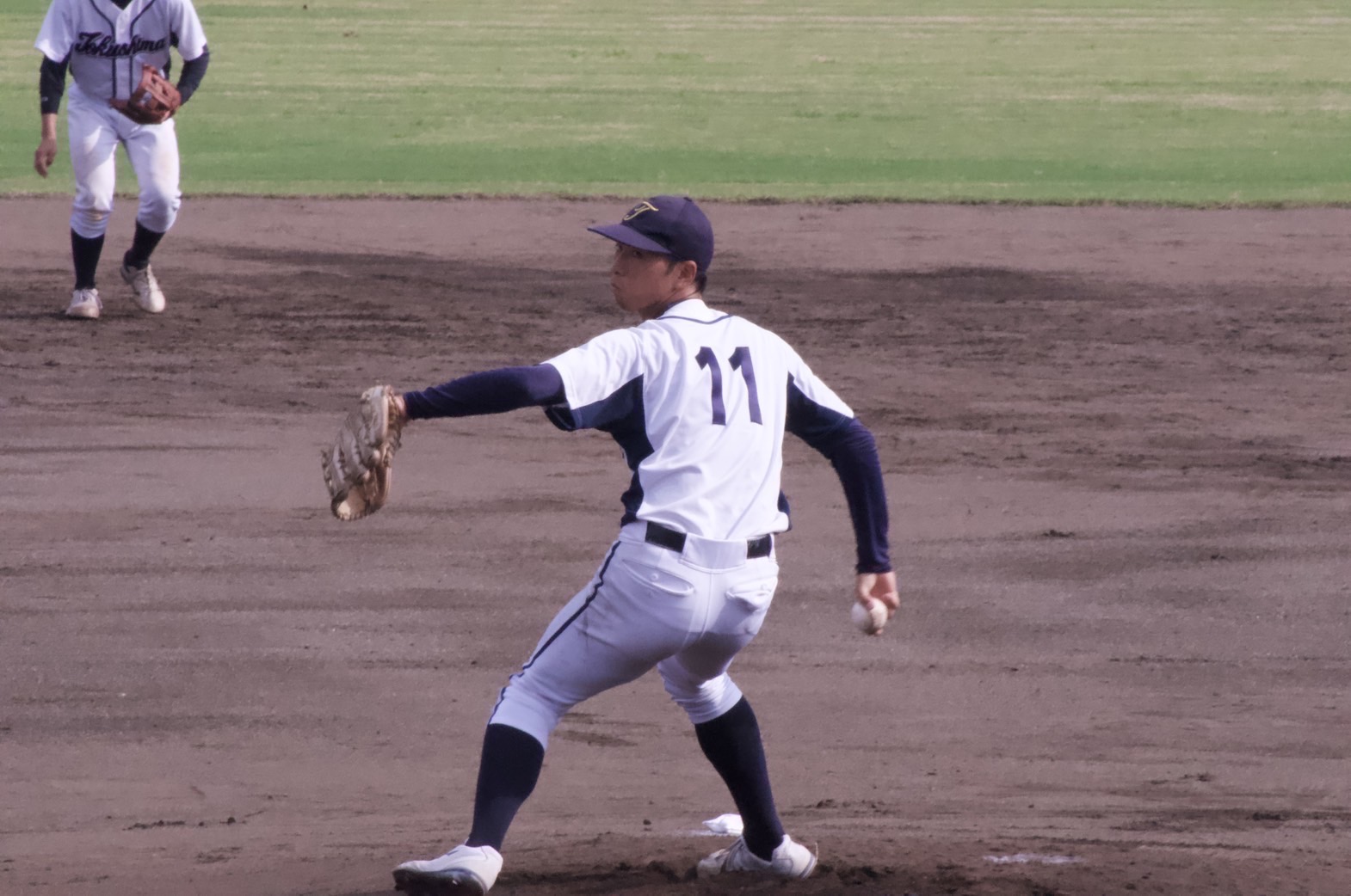 昨日の勢いのまま勝って勝点を奪取したい愛媛大は、2回に臼井(4年:祇園北)のツーベースヒットから二死1.3塁のチャンスを作ると、ダブルスチールの間に幸先よく先制に成功する。このリードを守りたい愛媛大は先発の小池(4年:焼津中央)、三浦(1年:大分舞鶴)、目木(1年:姫路東)の投手リレーで8回まで徳島大打線を無失点に抑える好投をみせる。対する徳島大の先発山添(3年:牧野)も2回以降は無失点の好投で味方の援護を待つ。迎えた最終回、一死から相手のミスなどで、一死二三塁のチャンスから1番畑野(1年:東海大大阪仰星)のニゴロ間に同点。なおも二死三塁から西山(2年:柏原)のライトオーバーのサヨナラヒットで試合終了。徳島大がサヨナラ勝利した。