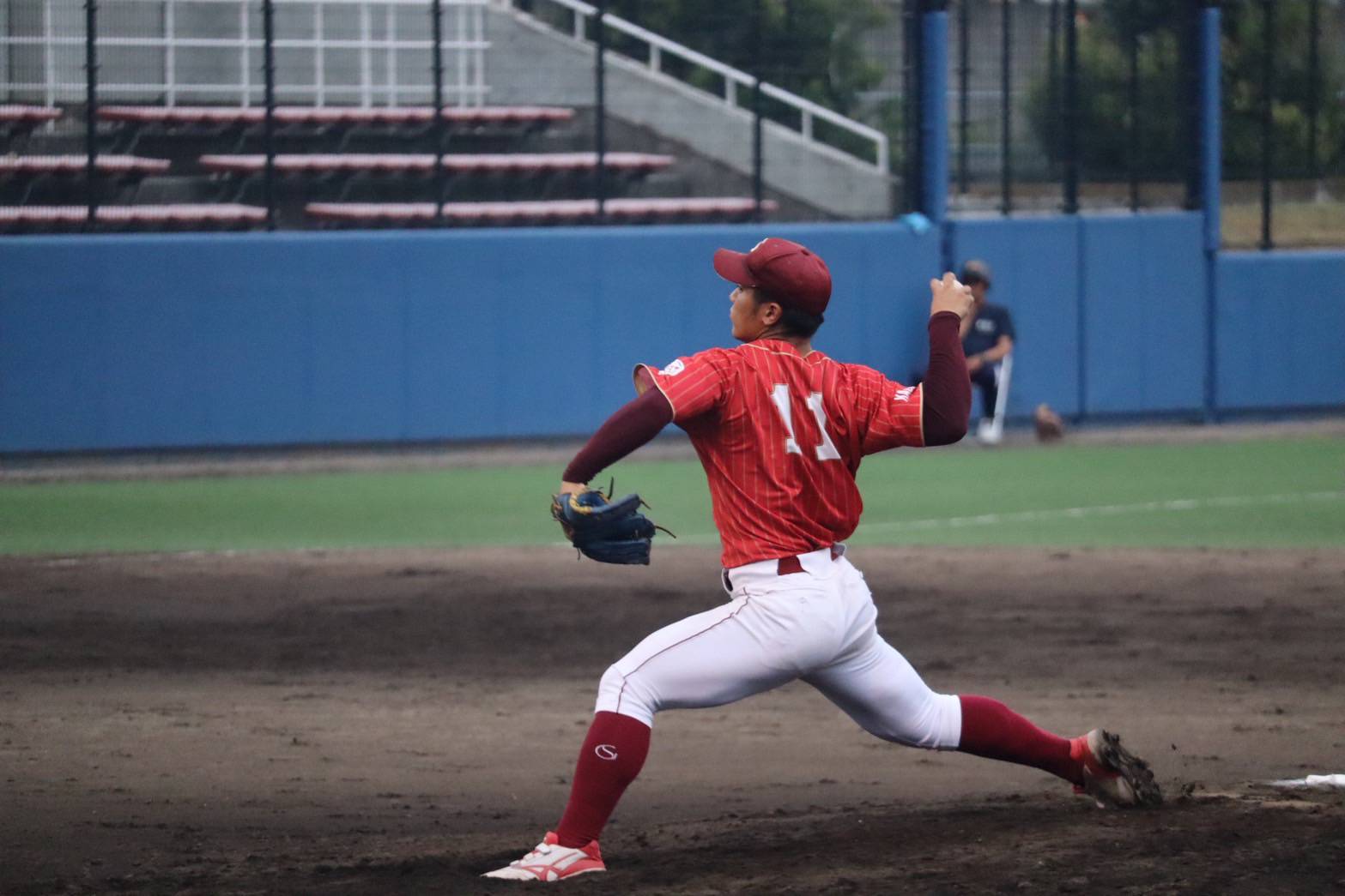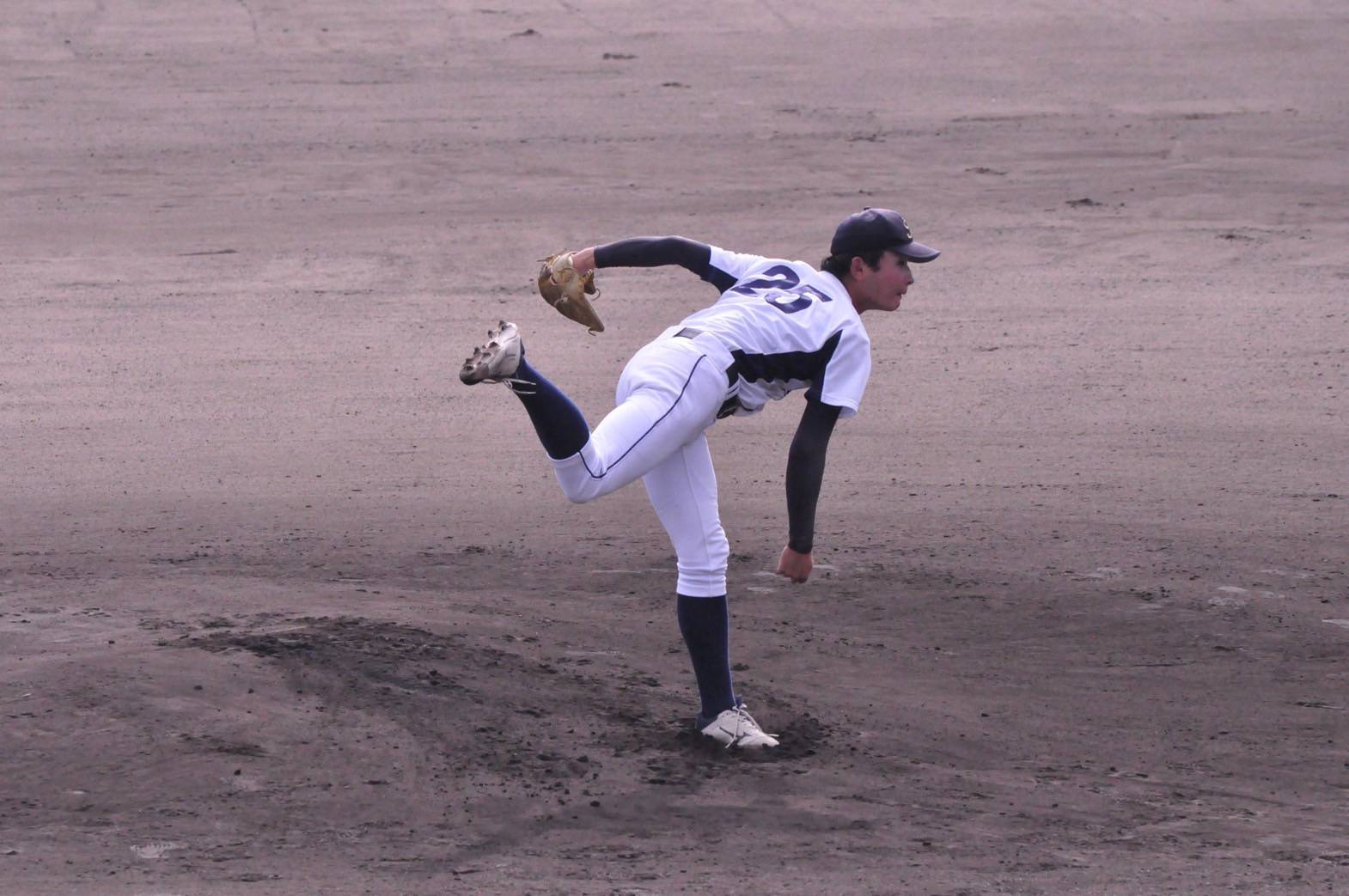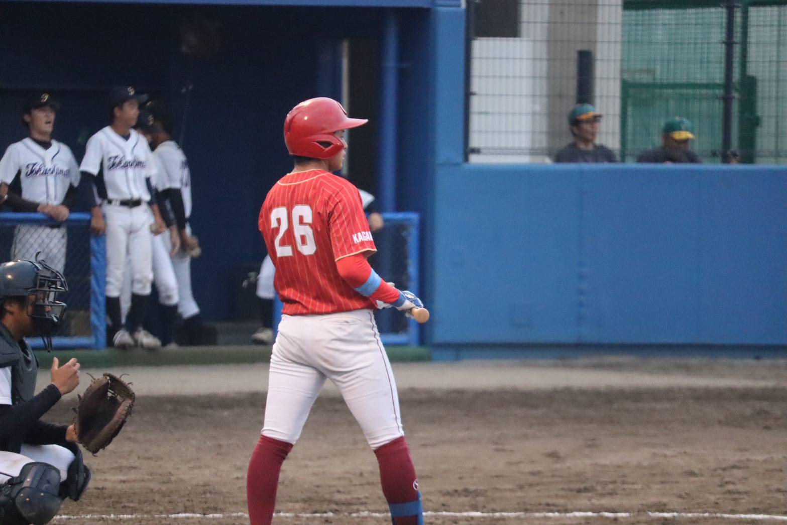 秋季リーグ戦の5週目の第2戦。ここまで2勝と苦しむ四学大と波にのりたい徳島大との試合。3回裏徳島大の攻撃、1番畑野(1年:東海大仰星)が四球で出塁し相手のエラーで先制する。反撃したい四学大は、5回表6番岡田(2年:高松商)が四球で出塁し、8番桃原(2年:コザ)のヒットでチャンスを広げ、9番喜屋武(3年:KBC未来沖縄学園)の犠牲フライで1点をかえす。その後、両者得点を奪えずタイブレークに入る。10回表四学大の攻撃、代打中野(3年:明徳義塾)のバントでチャンスを広げると、四死球やエラーで4点を追加に成功する。その裏徳島大の攻撃は、4番柿木(4年:姫路飾西)の初球に新鞍(2年:志度)の暴投により1点を返す。逆転したい徳島大だが新鞍(2年:志度)の好投により四学大が勝利した。