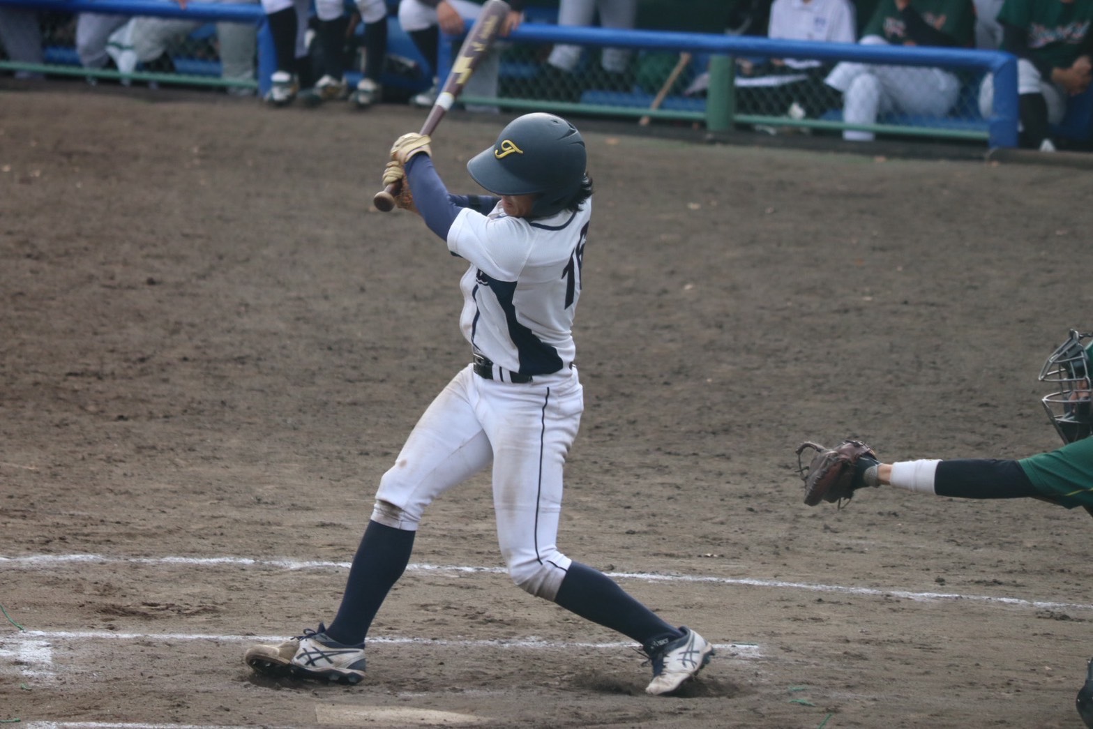 この2週目で勝点を獲得したい高工大は、2回表、5番木村(3年:高知)が中二塁打で出塁し、6番岡村(3年:高知商業)の投手ゴロを徳島大先発神戸(3年:城南)が処理するも、一塁へ悪送球。その間に、高工大が1点を先制する。その後も、捕手の悪送球や、8番遠藤(1年:大手前高松)の右適時打で2点を追加する。反撃したい徳島大は、3回裏、1死から3者連続四死球で満塁のチャンスを作り、4番来福(2年:徳島城東)の右適時打で2点を返す。4回から6回まで両者1歩も譲らず、スコアボードには0が並ぶ。7回に両チーム1点ずつを追加するも試合は終盤まで1点差の緊迫した展開が続く。迎えた9回裏、逆転を狙う徳島大。代打出原(2年:城北)が相手の失策で出塁すると、9番土田(2年:三田祥雲館)の中前安打、1番畑野(2年:東海大学付属大阪仰星)の遊内野安打で1死満塁のチャンスを作る。ここで2番鶴井(4年:桃山学院)が投手のフィルダースチョイスを誘い、試合は4-4の同点に。なおも続く好機で、3番真開(3年:城北)が中前へサヨナラの適時打。最後まで粘り強い攻撃を見せた徳島大が、劇的な逆転サヨナラ勝利を収めた。